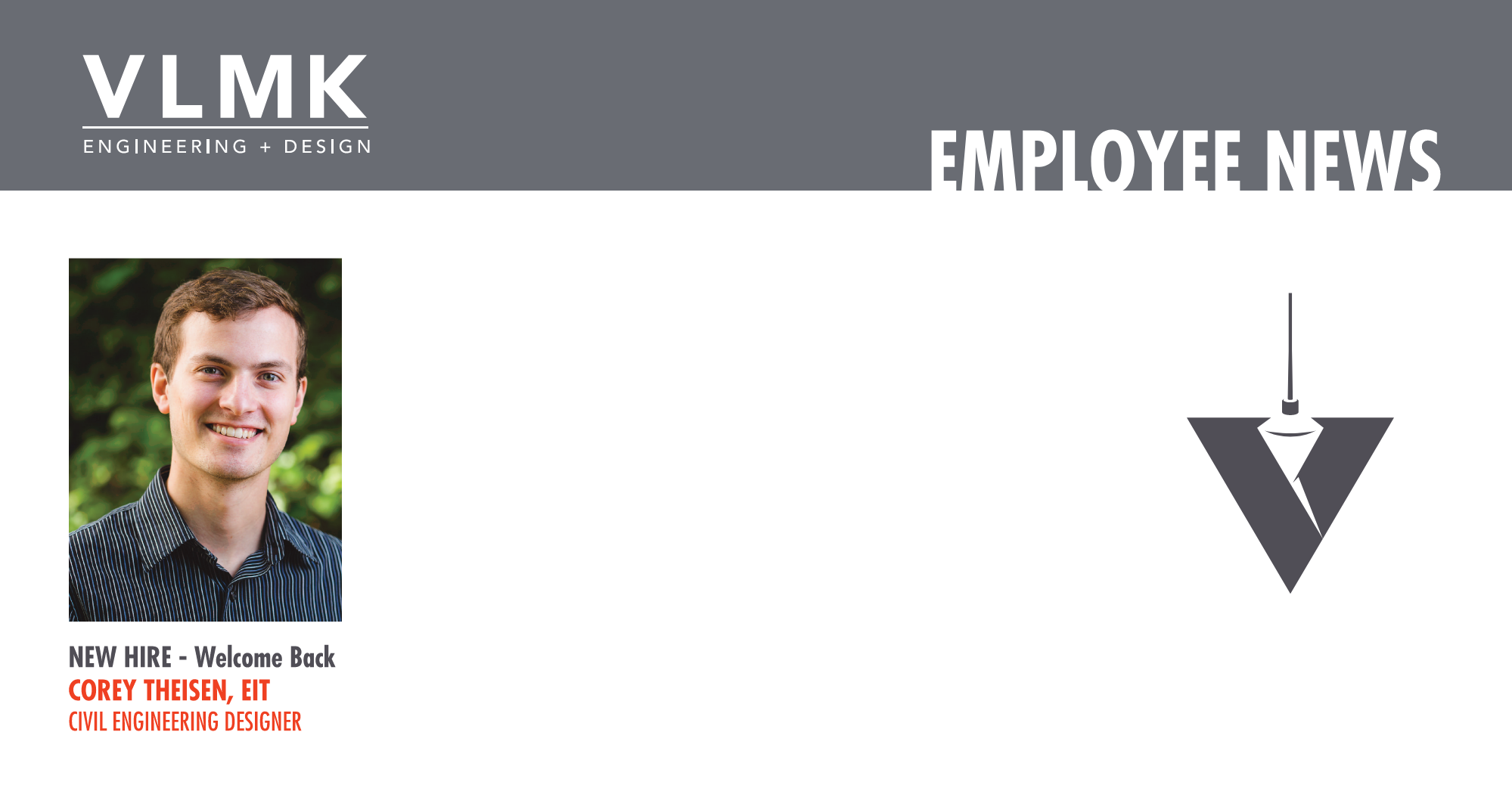 New Hire VLMK Employee News • December 5, 2017 We would like to welcome back Corey Theisen! Corey