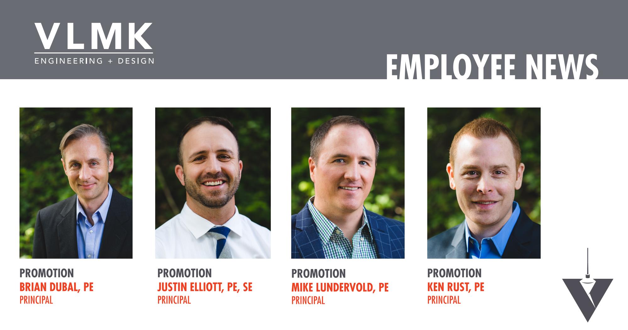 Employee Promotions VLMK Employee News • March 21, 2018 Congratulations to Brian, Justin, Mike and Ken on being promoted