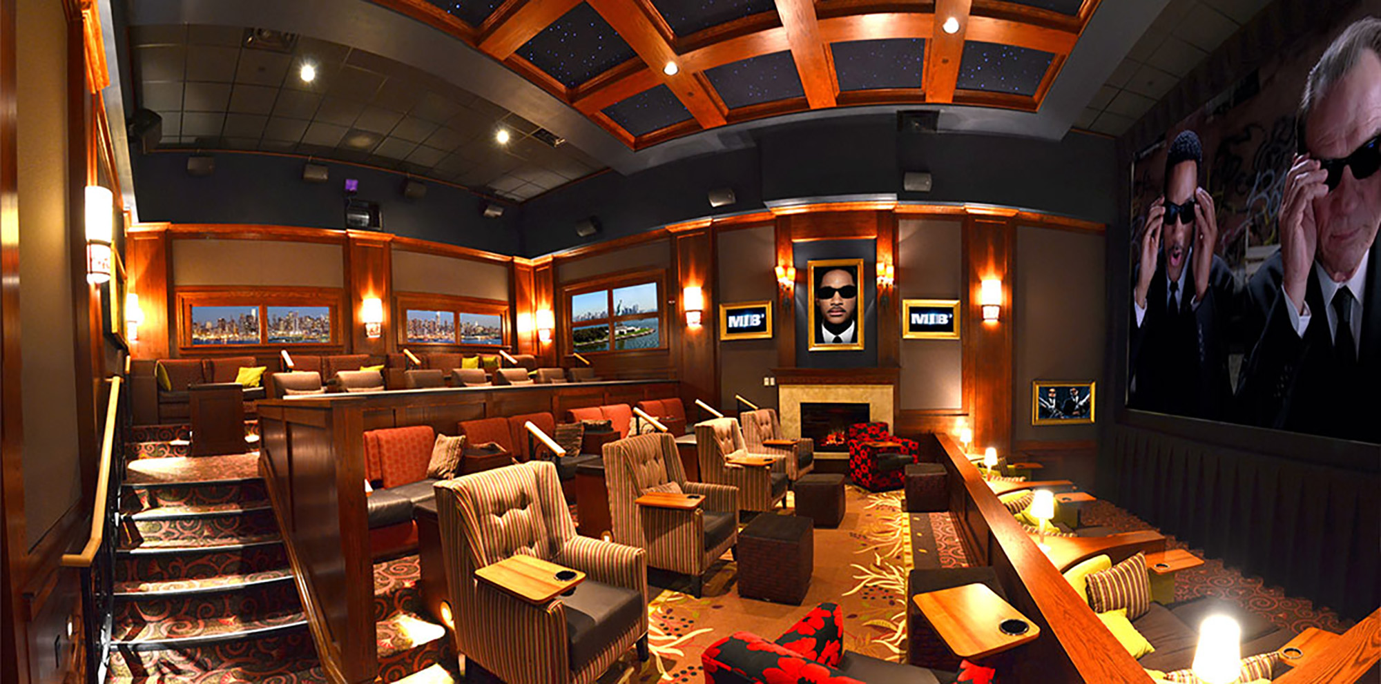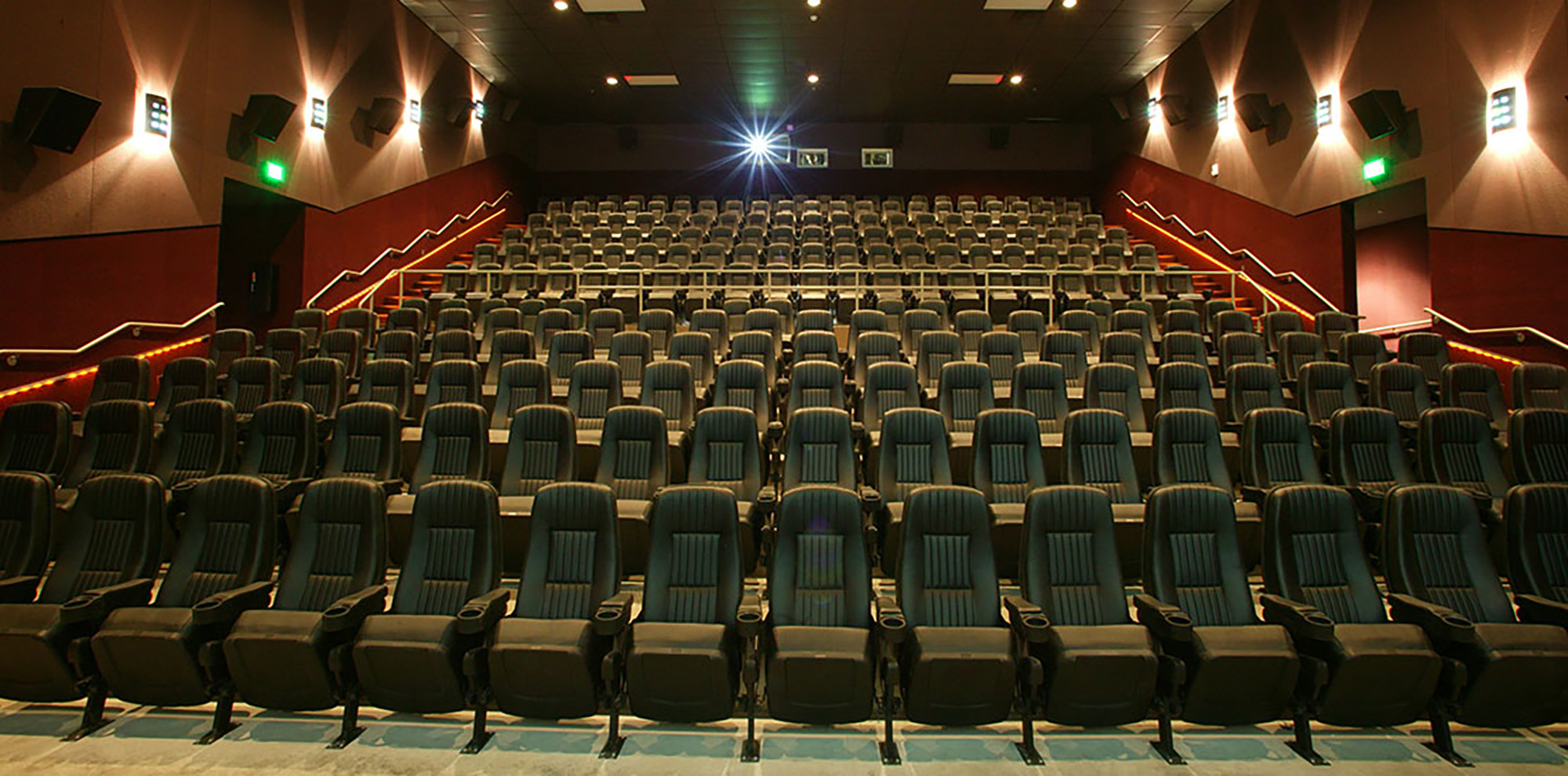Movie parlors can seat up to 34 people, living room theaters, with luxury skybox seating with ottomans can seat up to 159 people and 298 people can sit in the largest of the Grand Auditoriums. The theaters have superior seating, Digital Super High Definition projection and exclusive 7.1 Digital surround sound systems.