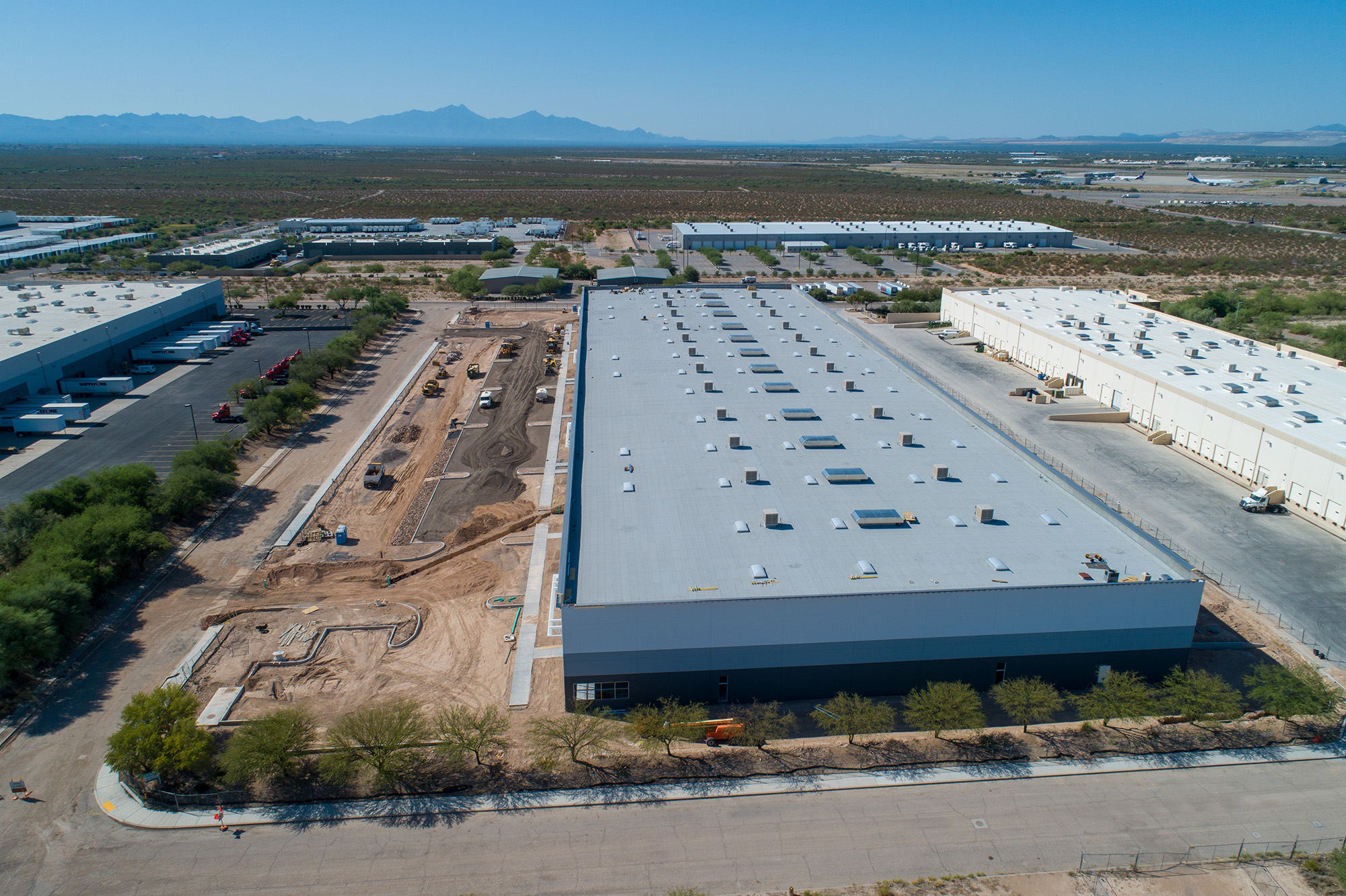 Tucson Airport DC is adding a 157,500 Sq. Ft. single-story concrete tilt-up building with loading dock, related parking, and utility infrastructure including a stormwater management facility and rainwater harvesting areas. The new shell building is designed for up to 6 potential tenants.